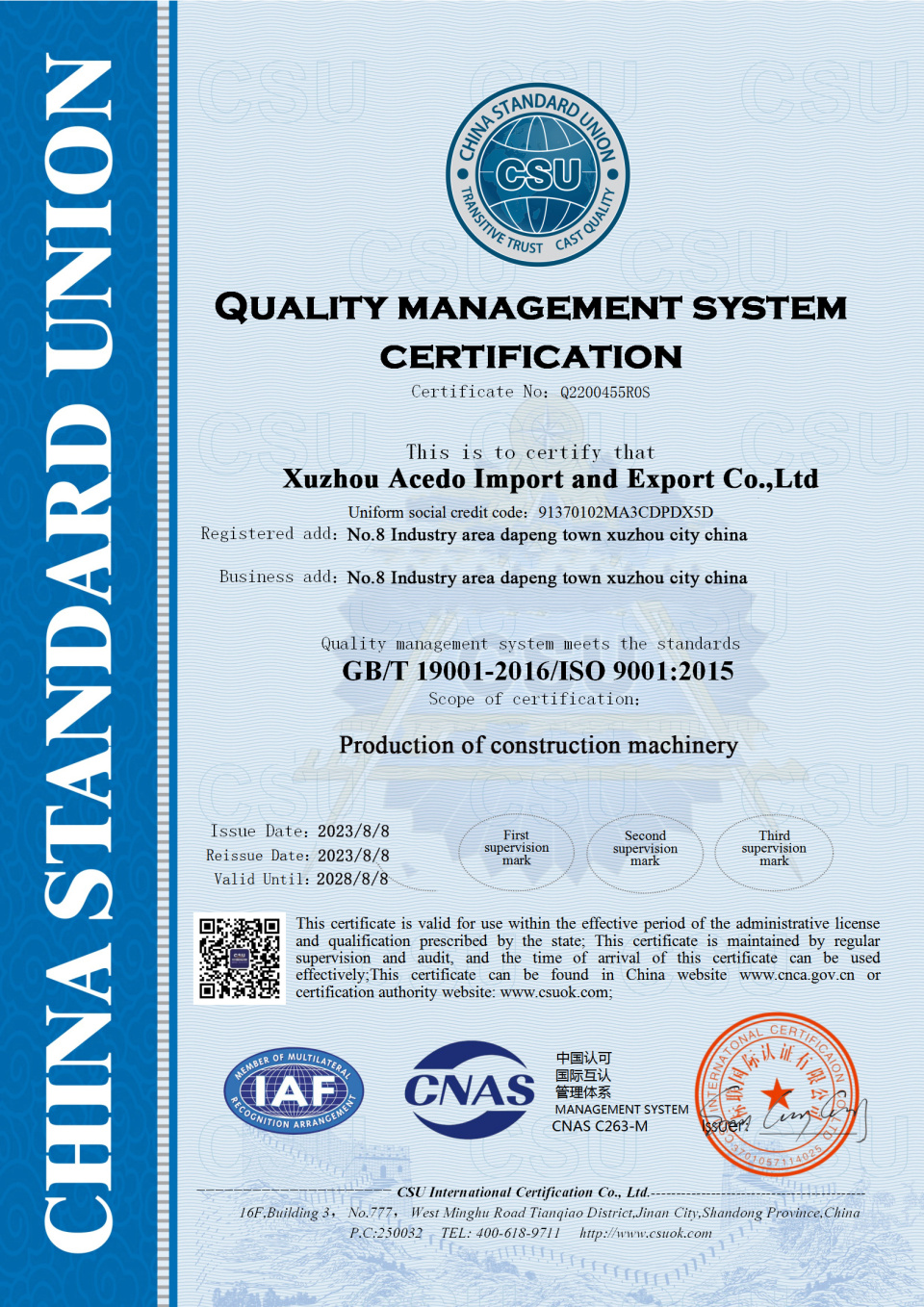 A Xuzhou Acedo Import and Export Co., Ltd. é um fornecedor profissional especializado na exportação de máquinas de construção usadas, com sede em Xuzhou - a capital da indústria de máquinas de construção da China. Nós nos concentramos em fornecer equipamentos de segunda mão de alta qualidade e econômicos para clientes globais, ajudando-os a reduzir os custos de investimento, mantendo a eficiência operacional.